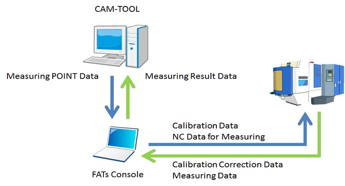 On-machine measuring console achieves on-machine measuring only by the measurement NC data created by C&G Systems Inc. CAMTOOL on-machine measuring option.